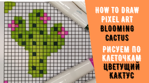 Рисуем по клеточкам цветущий кактус (pixel art)