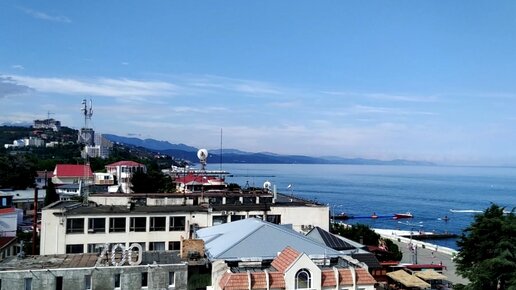 Вид на набережную с высоты птичьего полета. Колесо обозрения в Алуште