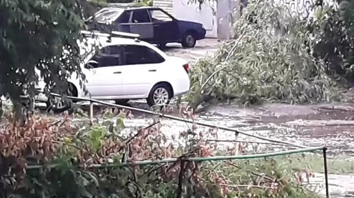 Дерево упало рядом с автомобилем