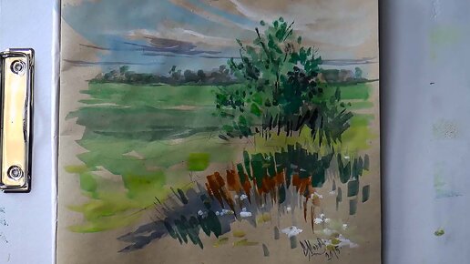 Лайфхак: Рисуем пейзаж с деревьями на крафте акварелью и белилами!