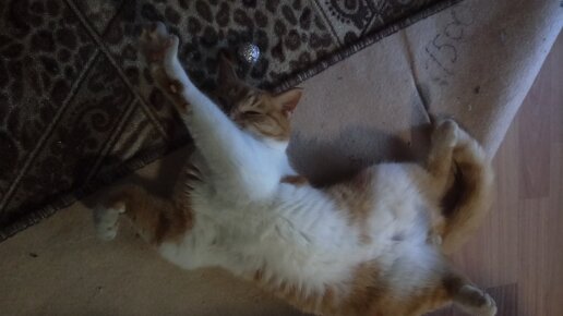 Мурчащий кот сам приносит мячик в зубах и хочет, чтобы с ним поиграли