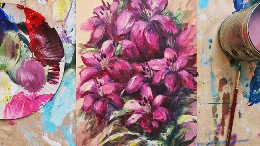 ЛИЛИИ |Букет розовых цветов| Мазковая живопись