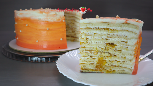 Торт на сковороде с персиковой начинкой и йогуртовым крем-чизом