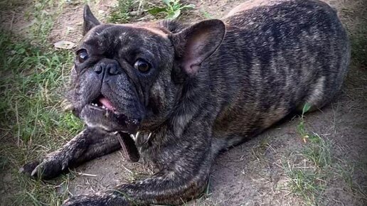Французский бульдог извазюкался в грязи. Пришлось принимать ванну
