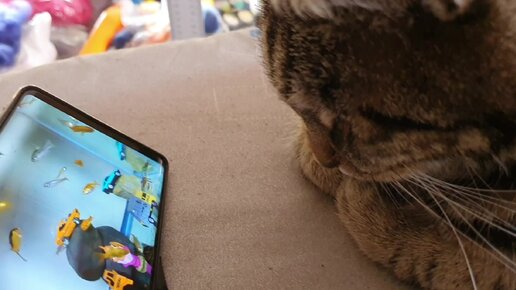 Реакция кота на различные видео. Тюфсе смотрит кино.