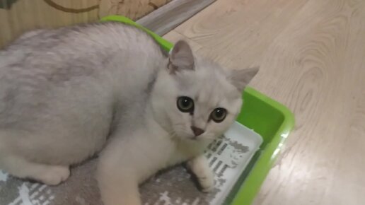Котёнок безумно рад новому горшку.