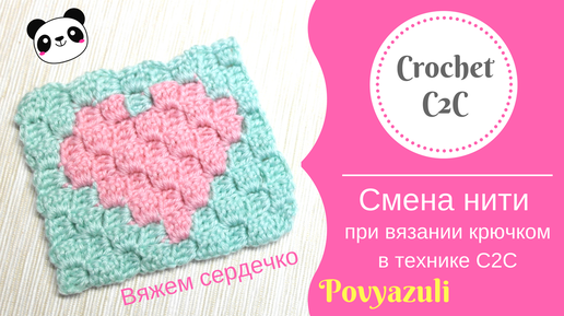 Как сменить цвет нити при вязании крючком в технике С2С (из угла в угол, по диагонали).
