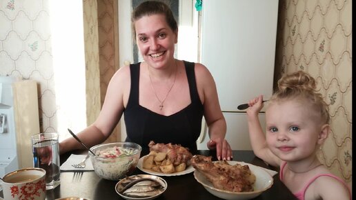 Мукбанг: Крыло индейки//молодой картофель// овощной салат//килька// мукбанг с дочкой