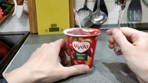 Приобрел йогурт Чудо - делюсь впечатлением и кусочками вишни.