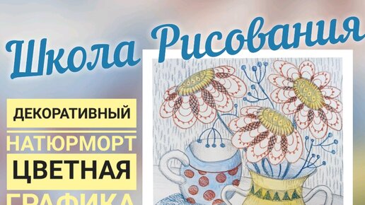 Рисуем декоративный натюрморт акварелью и цветными карандашами. Школа рисования для детей