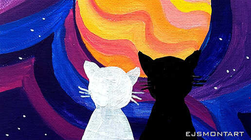 На что похожа Луна? "Мир глазами котиков" картина акрилом
