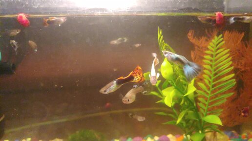 Самки Гуппи также растут в 15 - литровом аквариуме, как и самый большой самец Гуппи !
