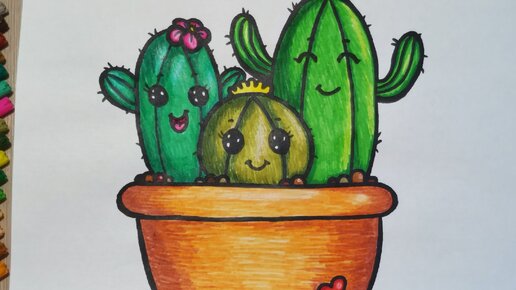 Урок рисования. Рисуем милые кактусы. Рисунок фломастерами