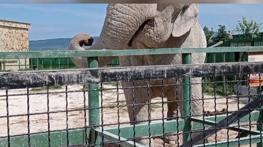Игривая слониха виртуозно поглощала корм и посыпала всех соломой и пылью. А затем грациозно ушла под музыку