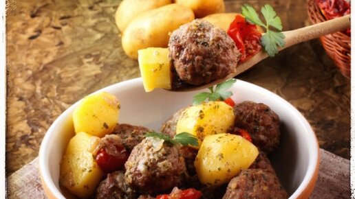 Картофель с тефтелями и шампиньонами в духовке 😋😋😋😋