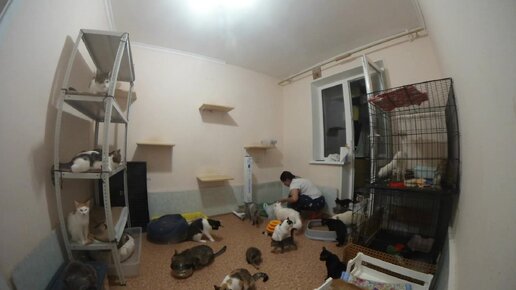Приют "ЛИС". Уборка помещения для здоровых животных.