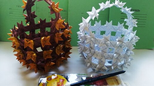 Плетёная декоративная корзинка из тетрадных листов!