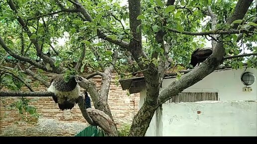 Павлины монастыря особенно любят сидеть на ветках фруктовых деревьев