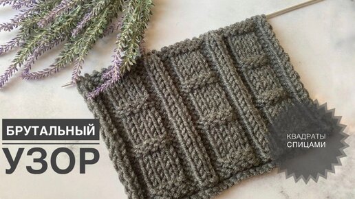 Простой узор КВАДРАТЫ спицами / Узор из лицевых и изнаночных / Вязание спицами / Узор спицами