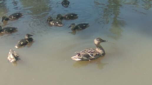 Кот хотел поймать утёнка, реакция утки-мамы