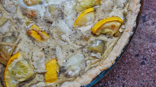 Открытый пирог с кабачком, сладким перцем и пармезаном. Семья требует готовить снова и снова..