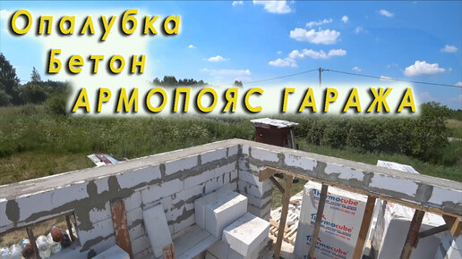 Гараж пристроенный к дому. Стены завершаю армопоясом. Опалубка из блоков, заливаем бетон.