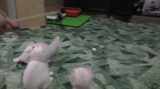 Показываю хорошую кошачью игрушку. Котики носятся за ней.