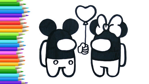 Как нарисовать АМОНГ АС Микки и Минни Маус / Рисунок раскраска для детей / MimiDom Art