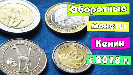 Оборотные монеты Кении с 2018 года. Животные на монетах.