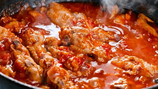 Рассказываю как приготовила курицу в томатном соусе и чесноком