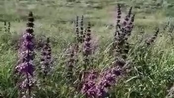 Фиолетовые цветы (клевер?) в ойратской степи. Ветер. Калмыкия, июнь 2021 года.