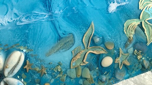Как сделать морской мотив, натуральные камни и ракушки, заливка в несколько слоев эпоксидной смолой
