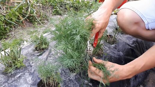 Срезаю кустовой укроп, чтобы он дал несколько урожаев
