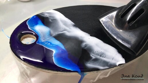 Подруга, ну очень просила эту доску для подачи блюд. Даже деньги предлагала. Эпоксидное море на черном фоне