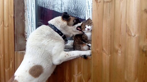 Как большие алабаи дружат с котами