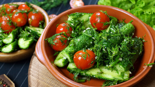 Малосольные огурчики с помидорами Черри