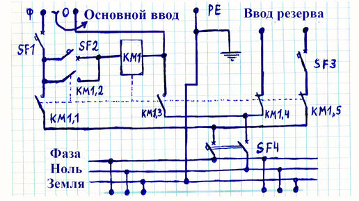 Как сделать автоматический ввод резерва (АВР) для однофазной электросети 220 В, схема на одном контакторе, описание ее работы