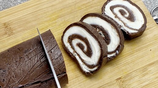 Шоколадный рулет. Готовлю десерт без духовки и без желатина