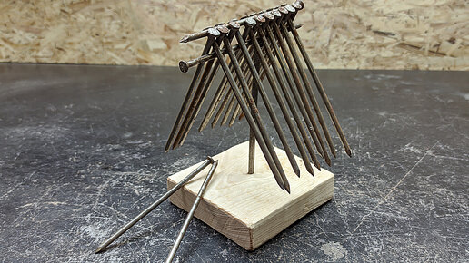 Фокус с балансировкой гвоздей или как удержать 20 гвоздей на шляпке одного