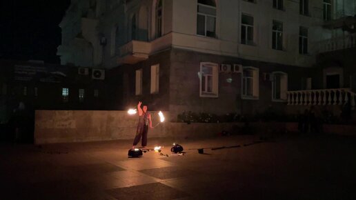 Выступление мастеров своего дела : Фаер-шоу на набережной в Крыму