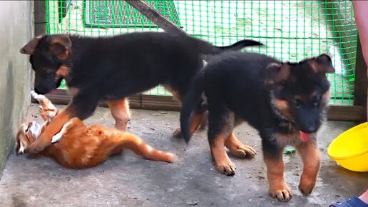 Котёнок Мартин и щенки Немецкой овчарки от Райда и Кинги.