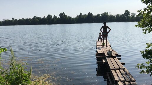 В Подмосковье жара, народ купается на озере.