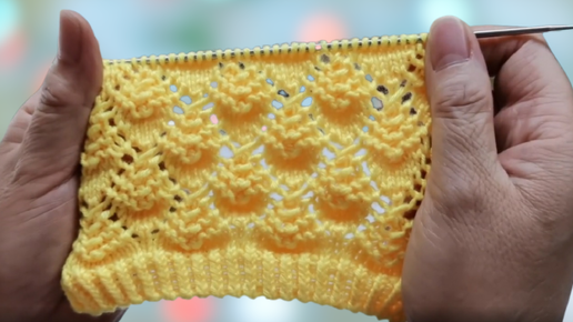 Узор с легким способом обвития . Вязание спицами.