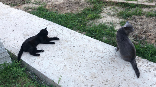 Наши котики (Тёма и Черныш) после жаркого дня собрались во дворе потоптаться возле меня.