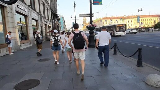 Очень разные люди на Невском проспекте в Санкт-Петербурге. Центр города. Красивая архитектура.