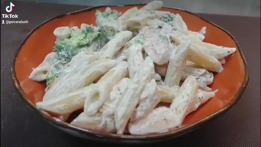 Пенне ригате с лососем и брокколи под сливочным соусом
