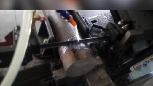 В первый раз попробовали с другом отрезать заготовку на отрезном станке. Показываю сам процесс