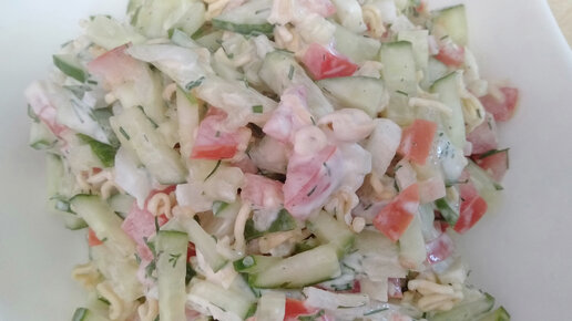 Летний салат с хрустяшками. Дети его обожают.