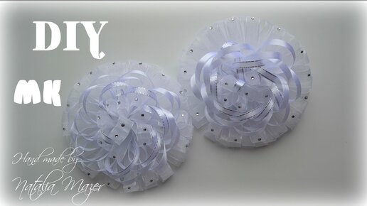 Белые Банты из органзы и лент на 1 сентября МК КАНЗАШИ DIY Amazing Ribbon flowers work