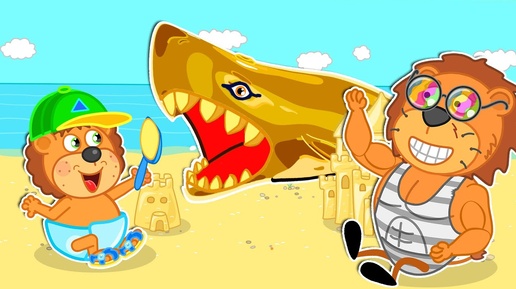 Has Fun Playtime on the Beach with Dad | Kids Stories About Lion Family | Cartoon for Kids